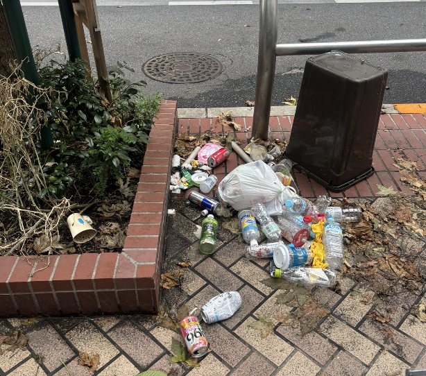 両エリアとも、ゴミがカラスに荒らされて散乱している箇所が多く見られ、環境美化の妨げとなっていました。