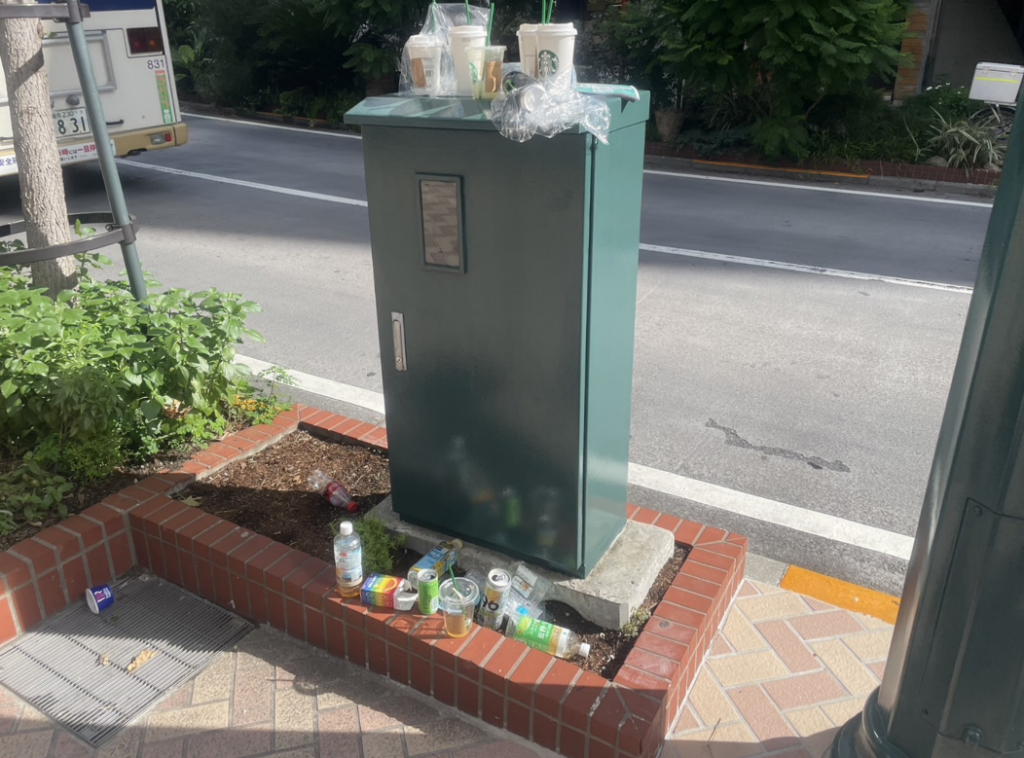 こちらも同様に、植栽周辺や指定場所以外に不法投棄が目立っていました。