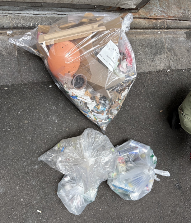 センター街では、可燃ゴミ90L、ペットボトル45L、缶45L、ビン15本の回収がありました。