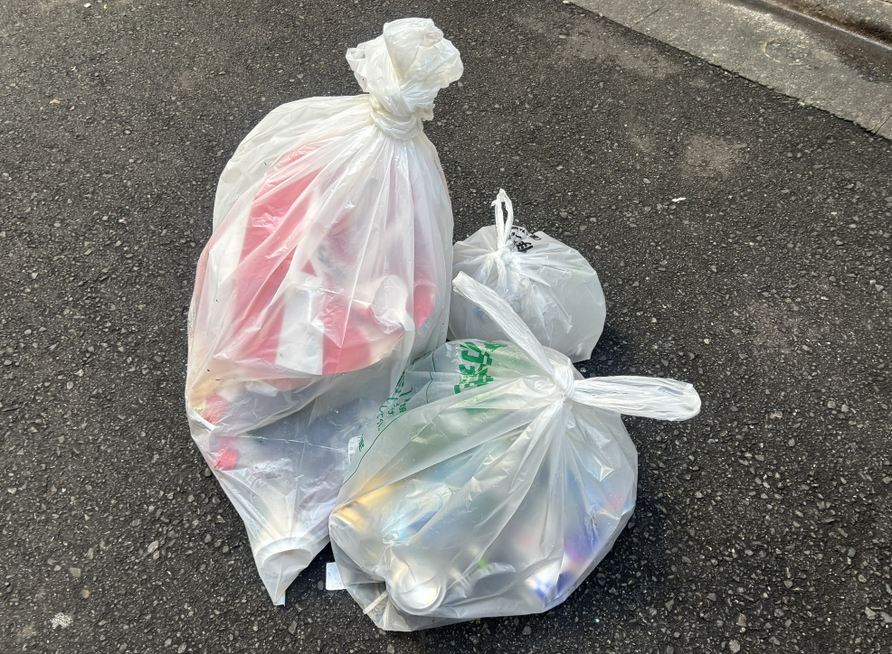 公園通りでは、可燃ゴミ70L、缶30L、ペットボトル30L、ビン15本を回収しています。