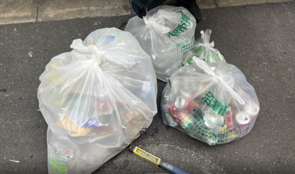 公園通りでは、可燃ゴミ 90L、缶 20L、ペットボトル 20L、ビン 1本 の回収でした。
