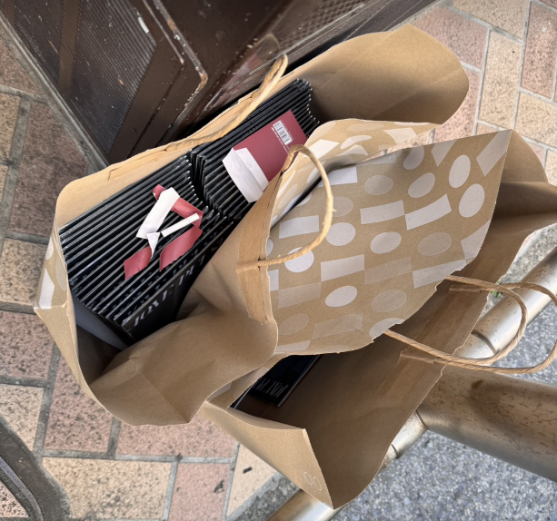 公園通りでも、可燃ゴミ90L、缶45L、ペットボトル45L、ビン15本、傘1本を回収し、こちらも大きな増減は見られませんでした。