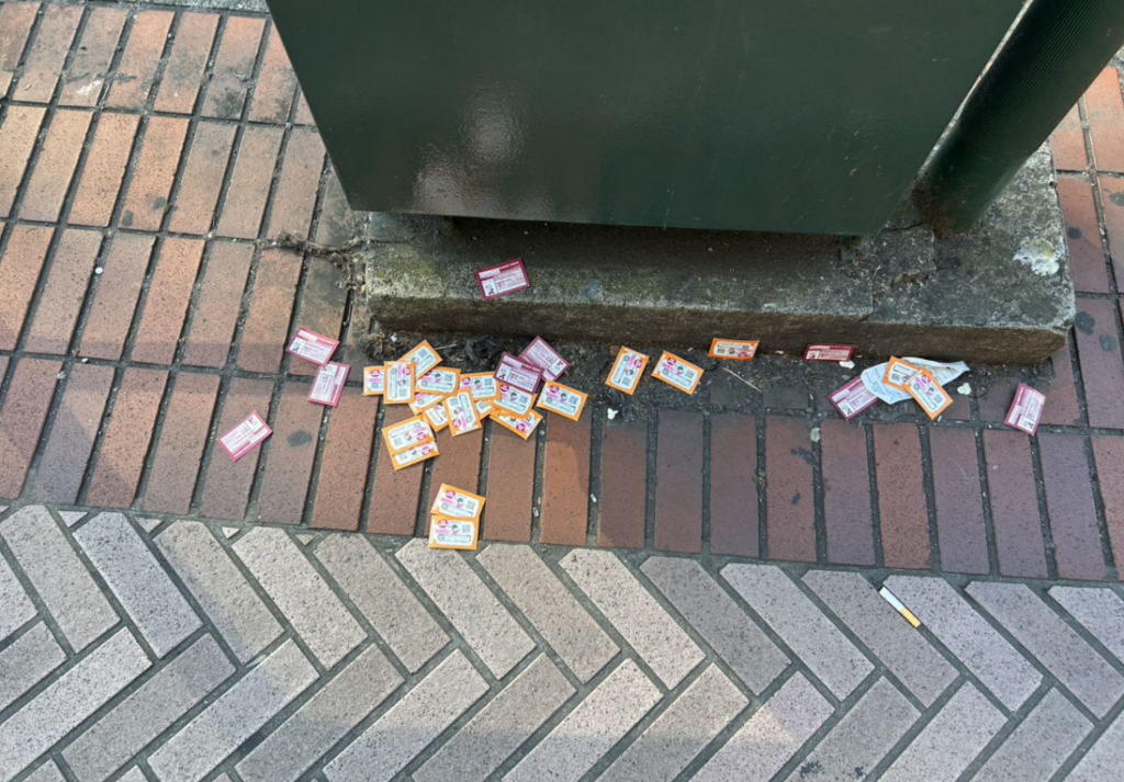 特に気になった状況 公園通りでは、散らばった「くじのゴミ」が多く見られました。また、誰かが置いたダンボール(不法投棄)をゴミ箱代わりにして、さらにゴミが捨てられてしまうという負の連鎖も起きています。