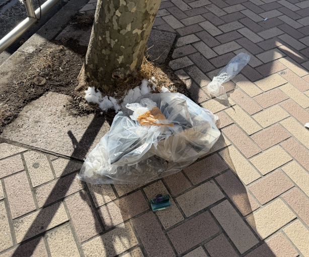 寒波でもゴミは減らず…?公園通りの現状 今回の驚きは、何といっても公園通りのゴミの多さです。 「これだけ寒いから、外で過ごす人もゴミも少ないだろう」……そんなスタッフの予想に反し、可燃ゴミは135Lにものぼりました。