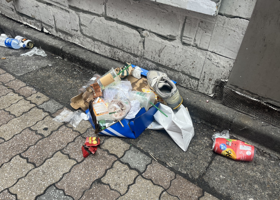 センター街の状況:散乱する生活の跡 今日のセンター街は135Lという大量の可燃ゴミが回収されました。 履き潰されたスニーカー、飲みかけのお酒、食べ終えたカップ麺……。誰かがそこで過ごした跡が、そのままゴミとして路上に放り出されていました。