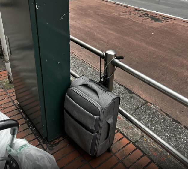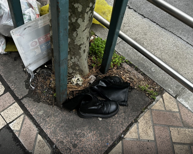 公園通りの状況:スーツケースやブーツまで…… さらに驚いたのは公園通りです。なんと、ブーツやスーツケースまで捨てられていました。 「新しいものを買ったから、古いものはここに置いていこう」……そんな無責任な行動が、街を汚し、多くの人の安全を脅かしています。