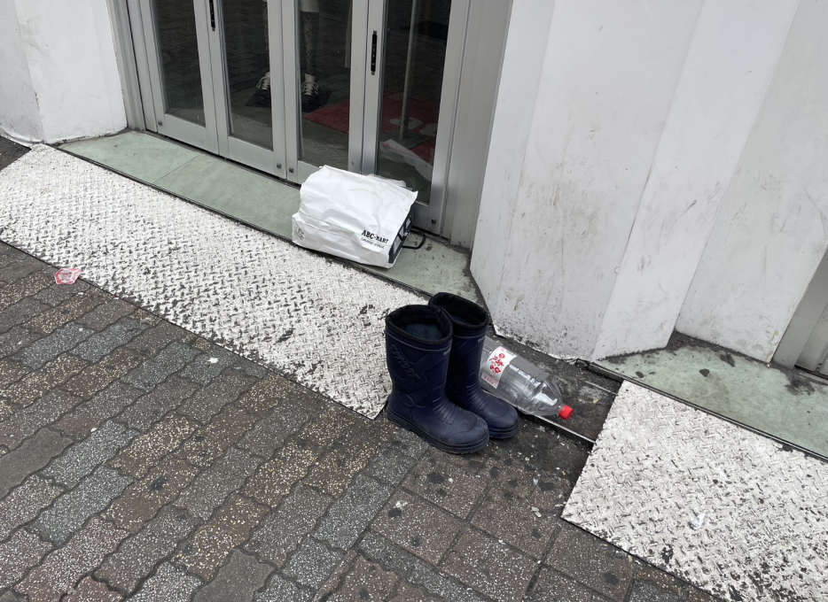 センター街:後を絶たない「靴」と「投げ捨てゴミ」 今日もまた、履き古した靴が路上に捨てられていました。さらに、大量の缶が入った袋が「ボン」と無造作に放置されている場面も……。袋にまとめてあるからといって、路上に置いていって良いわけではありません。