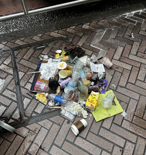 傘を差しながら歩くのが精一杯な天候でしたが、清掃スタッフが見た街の景色は、少し寂しいものでした。
