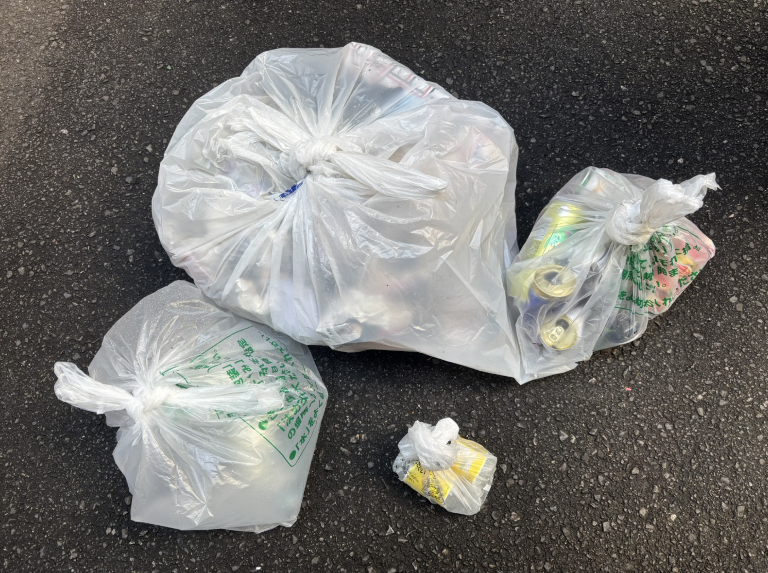 センター街の状況 こちらは可燃ゴミ80Lと、いつもの木曜日と同じくらいの量でした。決して「少ない」とは言えない量ですが、一つひとつ丁寧に回収しました。
