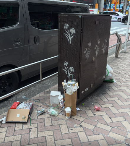 公園通り:スニーカーの箱にコーヒーカップ……広がるゴミの影