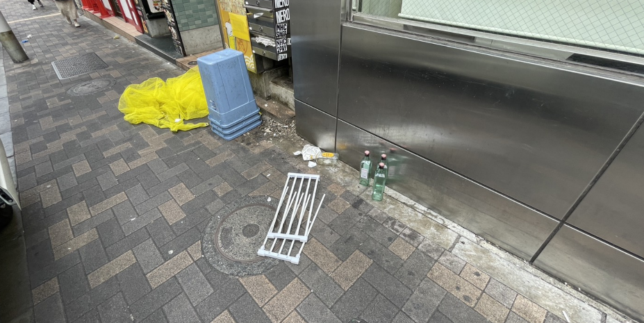 公園通りでは、 なんと、路上に椅子やカゴなどの「家具」が捨てられていました。