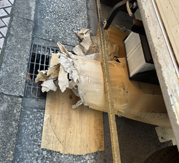 せっかく集積所に出されていた事業ゴミの袋が転がって破けてしまったり、遠くから飛んできたゴミが路地に溜まっていたり。 可燃ゴミは50Lと少なめに見えますが、「散らばったものを拾い集める」作業はいつも以上に手間と時間がかかる過酷なものでした。