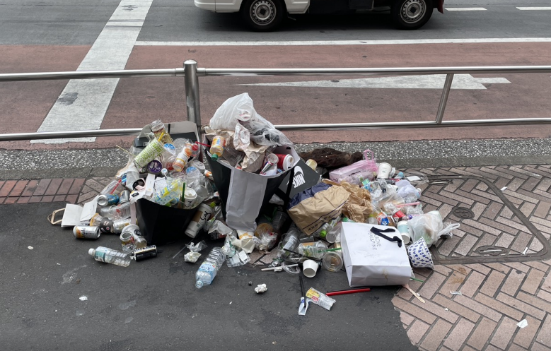 公園通りでも、可燃ゴミ90Lを回収。 特に気になったのが、ゴミの集積所にポイ捨て感覚でゴミを投棄していく行為です。 「ゴミがあるから、そこに置いていけばいい」という安易な考えで、家庭用や事業用の正規の集積所に、飲みかけの容器や食べ歩きのゴミを重ねていく人が後を絶ちません。これでは集積所が崩れ、街全体が汚れる原因になってしまいます。