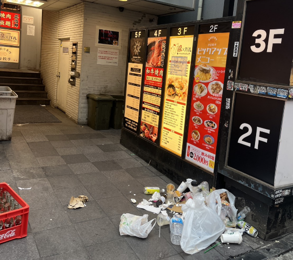 今日のセンター街では、可燃ゴミ90Lに加えて、ビルの入口や敷地内に不法投棄されたゴミが目立ちました。